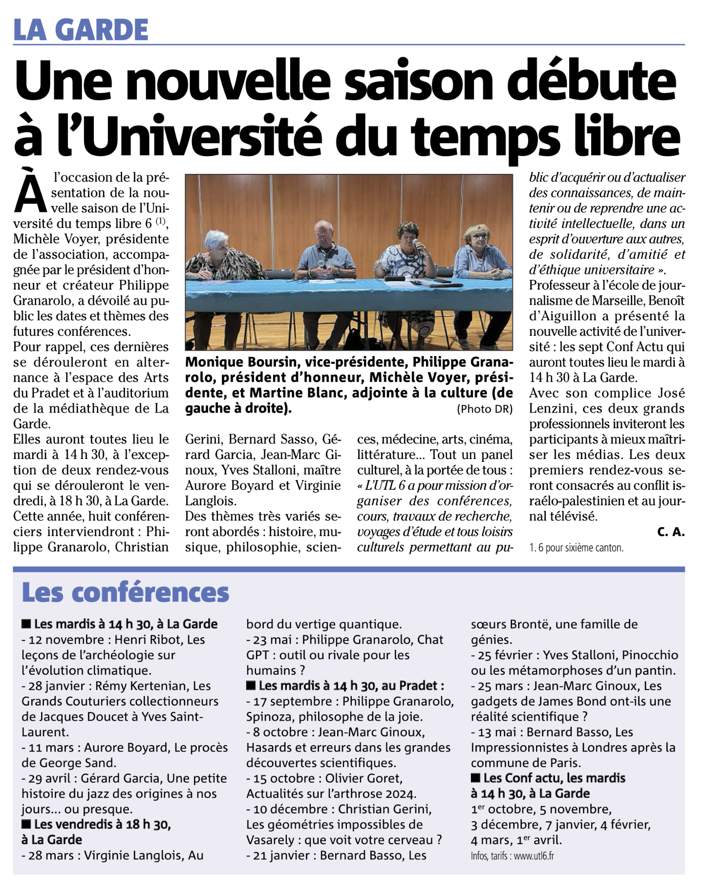 L’UTL6 à l’honneur dans Var-Matin ce lundi 16 septembre 2024 à l’occasion de sa rentrée.